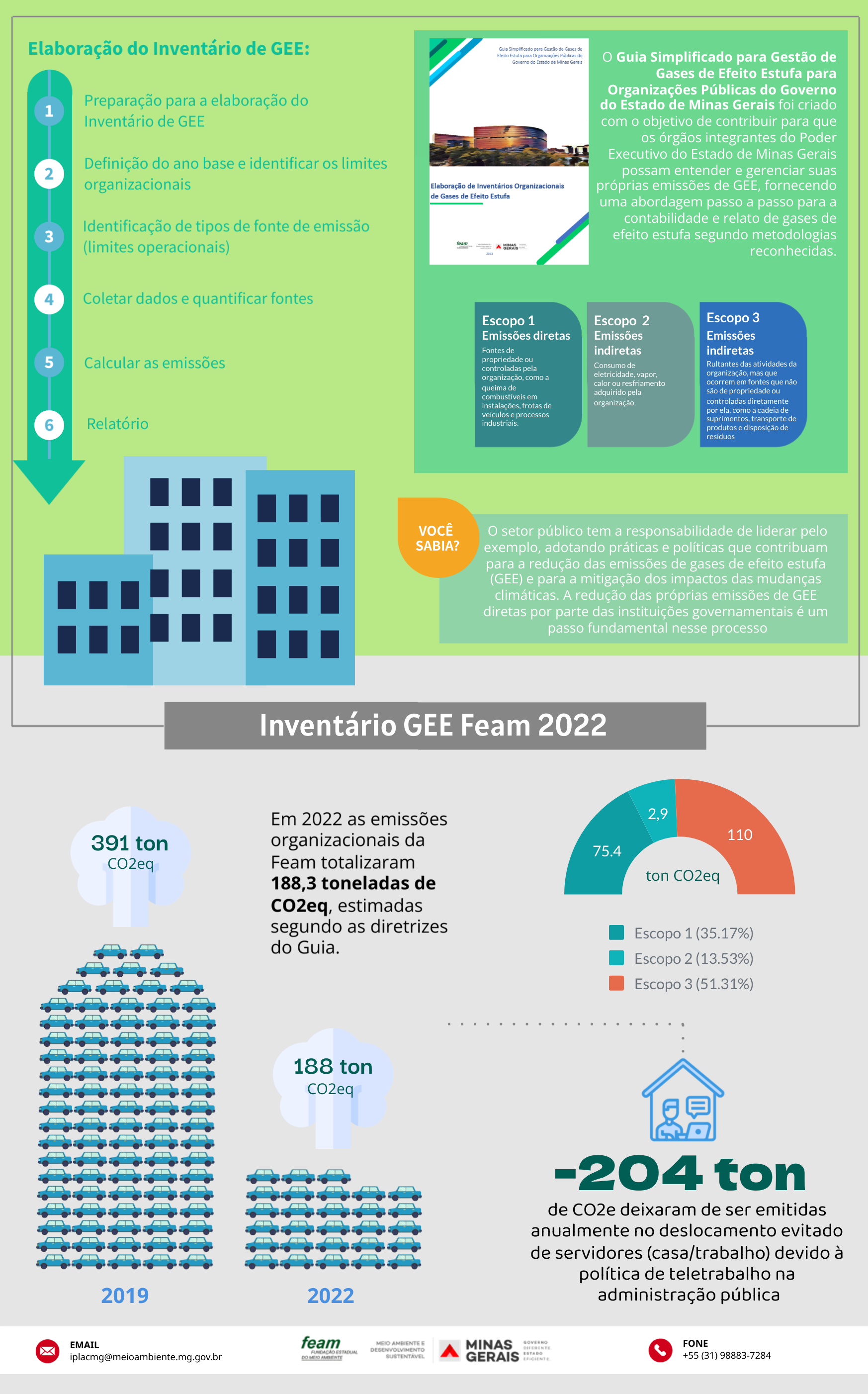Pensando nisso, foi desenvolvido o Guia Simplificado para Gestão de Gases de Efeito Estufa para Organizações Públicas do Governo do Estado de Minas Gerais com o objetivo de contribuir para que os órgãos integrantes do Poder Executivo do Estado de Minas Gerais possam entender e gerenciar suas próprias emissões de GEE.